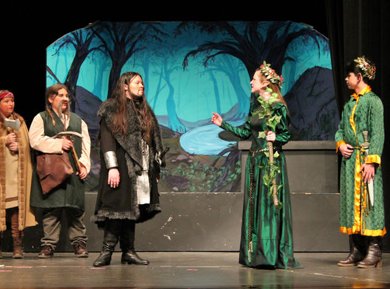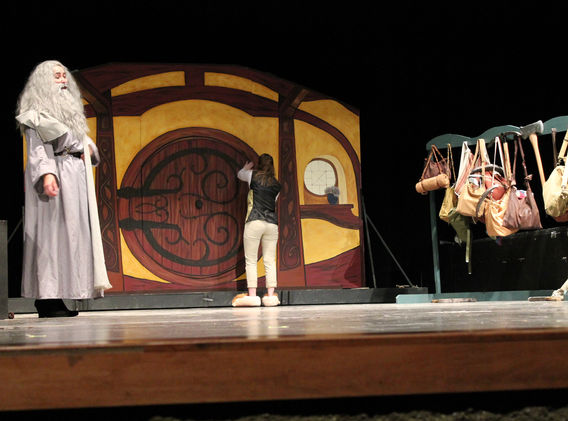 Our Town Players, a local non profit in southwest Michigan, puts on a number of theatrical plays, musicals, and events each year. One such year, they took on the literary genius of J.R.R. Tolkien in his masterpiece, “The Hobbit”. As a long time fan and enthusiast of his work and the theatrical productions stemmed from it, I was excited at the opportunity to help bring this world to life on stage. I drew inspiration from the book illustrations and narratives as well as the cinematic universe to create the backdrop for numerous scenes in the play. The entire cast and crew curated multiple stellar performances and I was honored to play a part in their success.